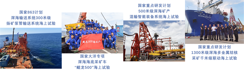 2021年作为重要参加单位和海试组织单位,组织完成了我国首次1000米级深海多金属结核采矿系统联动试验,取得了中国首例千米级深海多金属结核自行式全系统联动采矿海试的胜利。