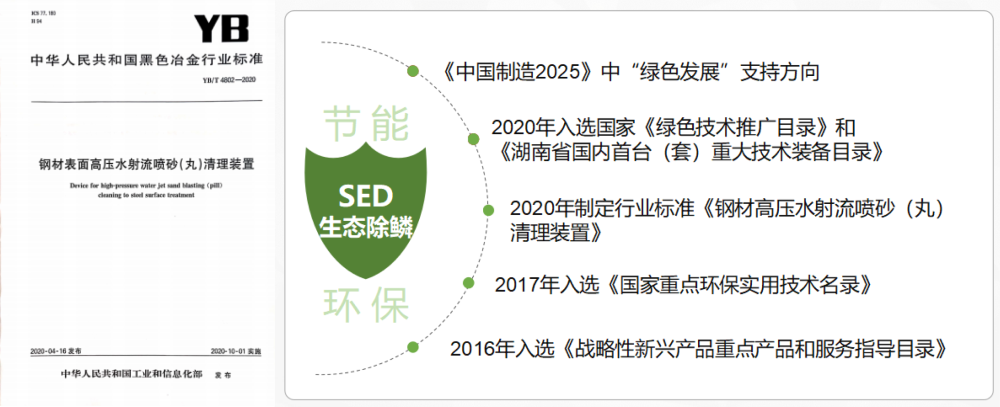●钢带无酸清理技术;SED生态除鳞设备与工程:板材清理设备、棒材清理设备、线材清理设备、管材清理设备、钎杆清理设备、复杂零部件清理设备、手持喷枪式高压水射流喷砂(丸)清理设备及专用清理设备的研发、制造和销售。